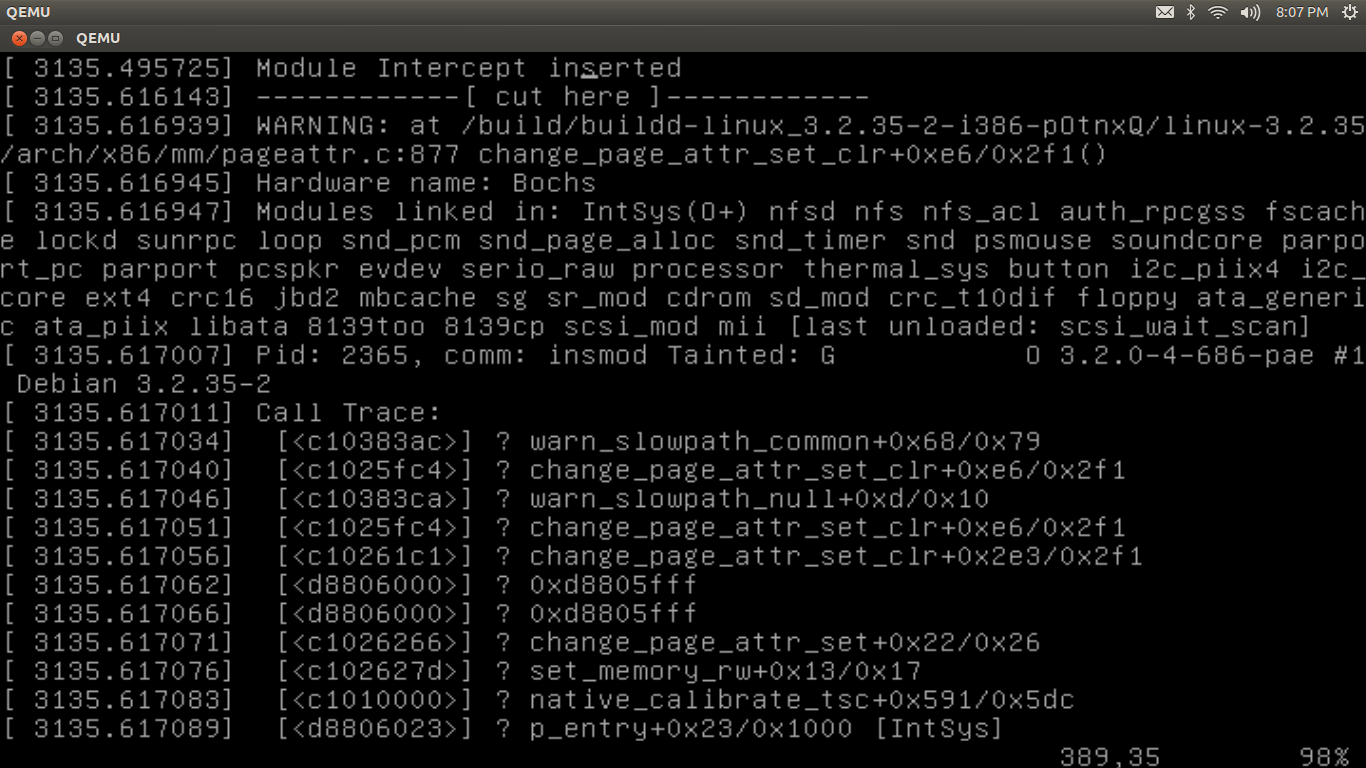 当然不是拦截系统call.Can,你帮我找出问题了吗?我正在使用3.2.04-686版本的Linux内核。