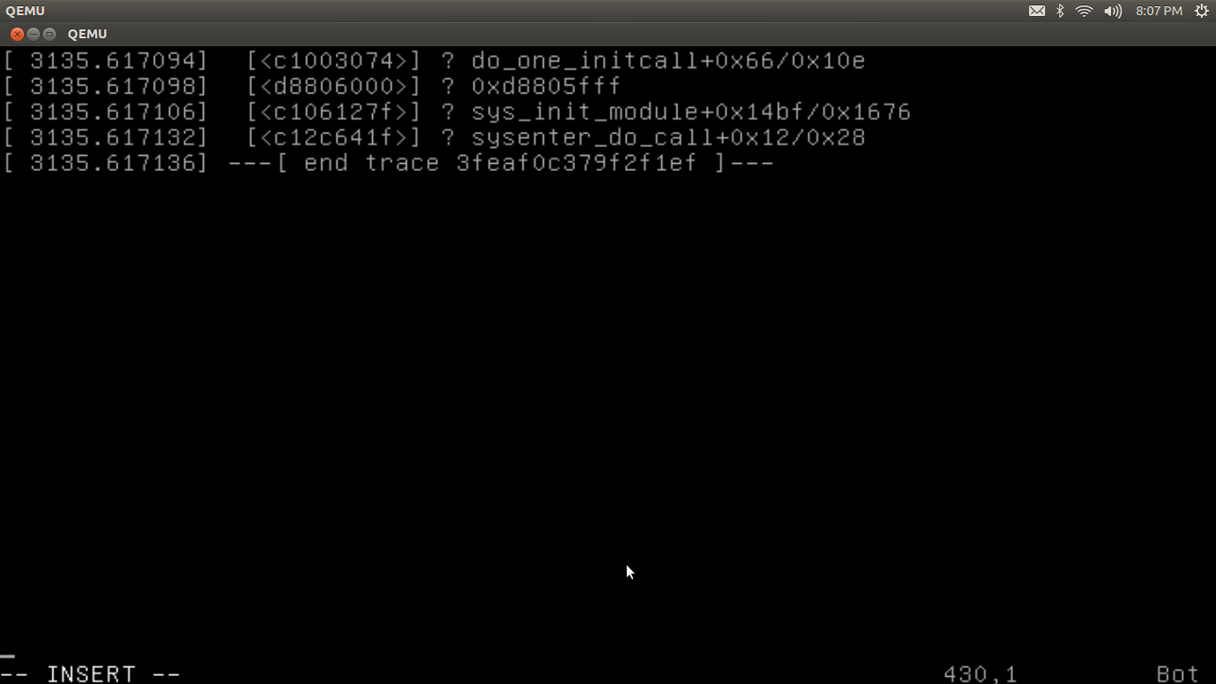 我一直试图在内核级别拦截系统调用。我从这个question中得到了基本的想法。我试图拦截的系统调用是叉()。因此,我从sys_fork()中找到了System.map的地址,结果是0xc1010e0c.Now,我编写了下面的模块。