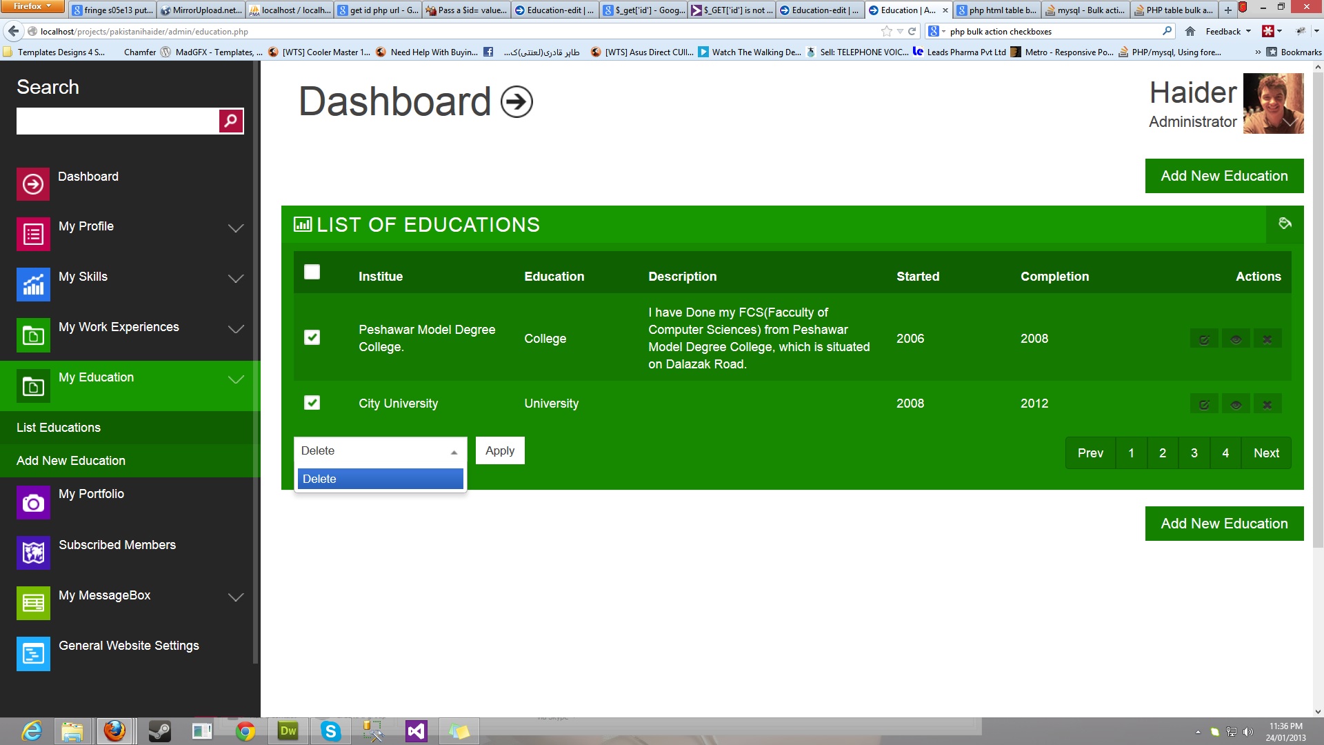 <input type="checkbox" name="educations[]" value="<?php $row['id']?>" />