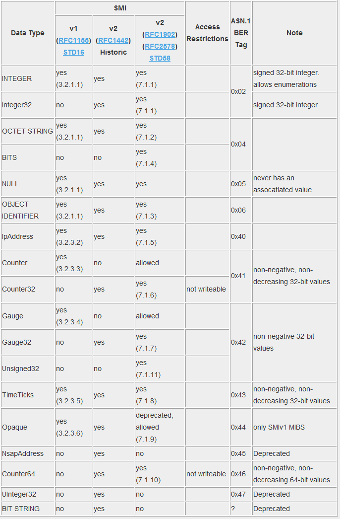 在IETF上发布的SNMP RFC文档只定义一组有限的类型,