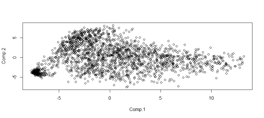 如果您绘制了从PCA中获得的分数,您将看到某些类将屈服于一个集群。