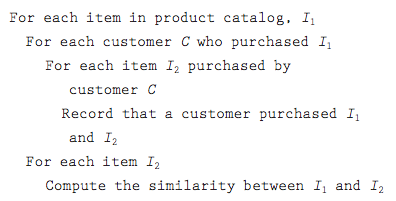 两个项目之间的相似性可以通过各种方式确定,但常用的方法是使用我们前面描述的余弦度量,其中每个向量对应于一个项目,而不是一个客户,向量的