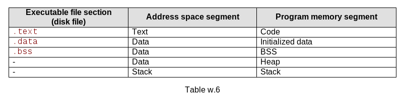 以上每一个,我都能理解它是什么,节是放在磁盘中,而段是放在内存中,而程序是加载的。当程序开始运行时,初始化的数据、BSS、堆段都放在数据段中,下表描述了更多细节: