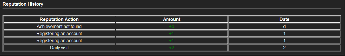 {elseif $reputation.action == 7}Earning a <font color="brown">Copper</font> <a href="/?website-achievements">website achievement</a>
