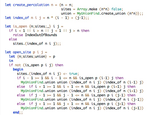 例如,如下所示,函数create_percolation和index_of显示blue颜色,is_open显示棕色。