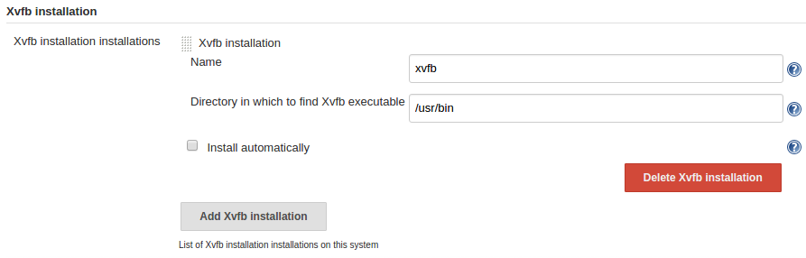 必须在"Manage“=>”配置系统“”=> "Xvfb安装中定义Xfvb安装。