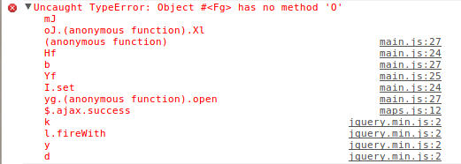 我试图使用InfoWindow来显示从AJAX调用中检索到的信息。infowindow没有关闭,只要我单击标记,就会给出这个错误。