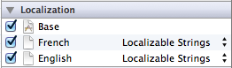 我从一个故事板开始,它很适合我的应用程序;它包含的字符串是英文的。我想增加一个法语本地化。我做了这个: