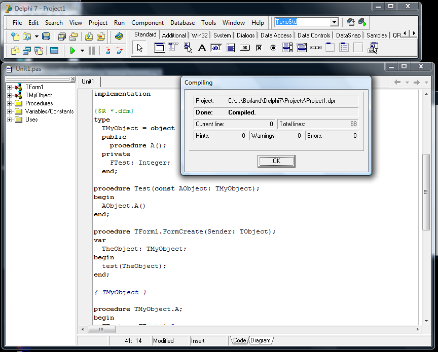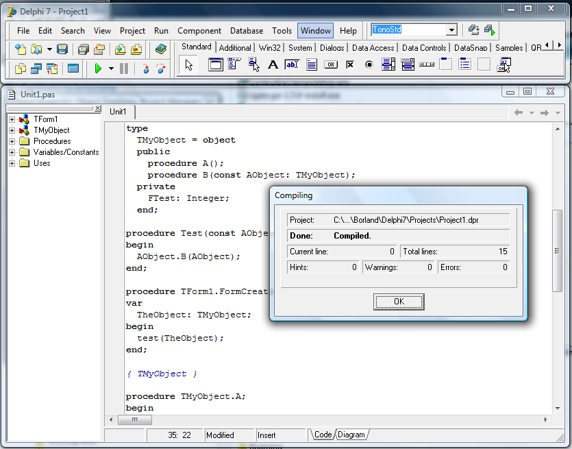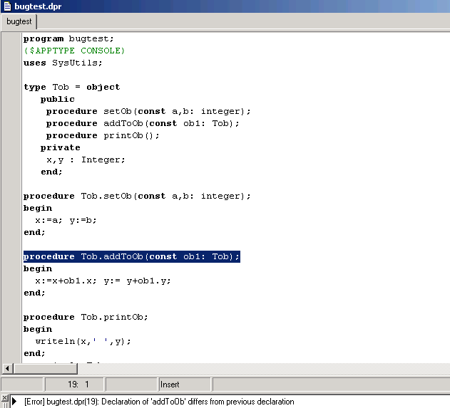 procedure TWhatever.SomeMethod( const : w1: TWhatever);显然它会在Delphi的后期版本上编译,但是我已经在Delphi7和Delphi2006上测试过了,而且也不会在任何一个版本上编译。