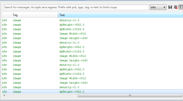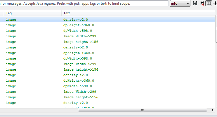 Log.i("image","dpWidth->"+dpWidth);TO :