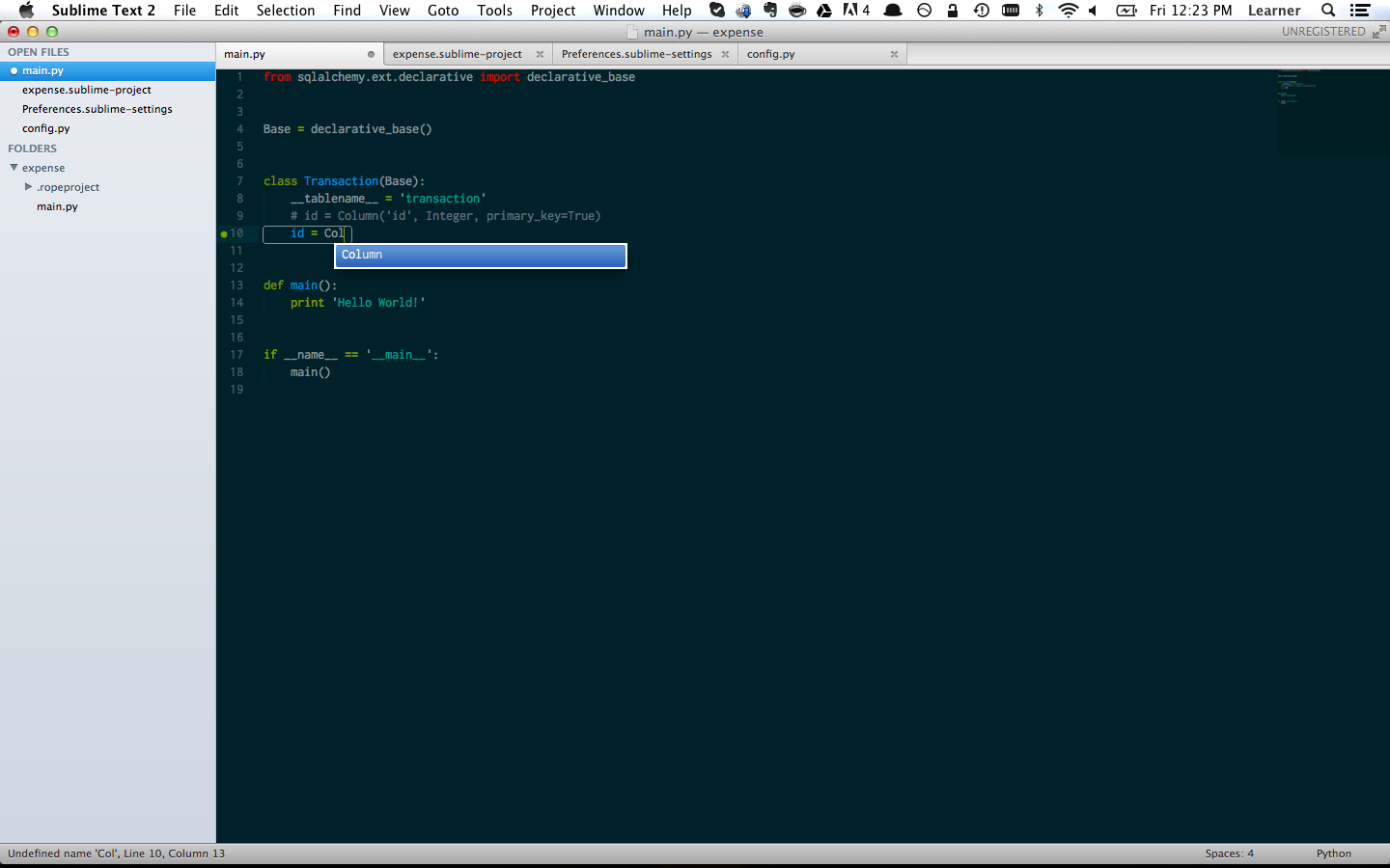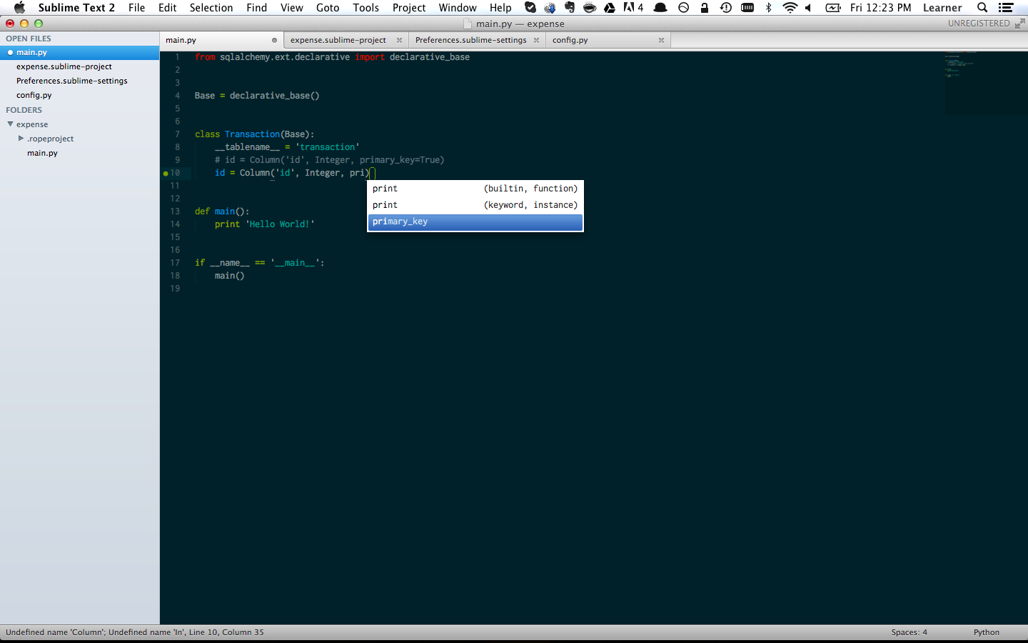 我试图将SQLAlchemy与SublimeText2结合使用,并执行以下顺序