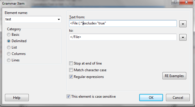 表达式<File (.*)exclude="true"中的文本具有尽可能频繁地表示任何字符的.*。