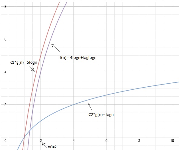 = O(logn) // where c1 can be 5 and n0 =2