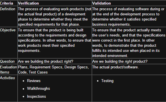 (动态和静态测试)和(验证和验证测试)