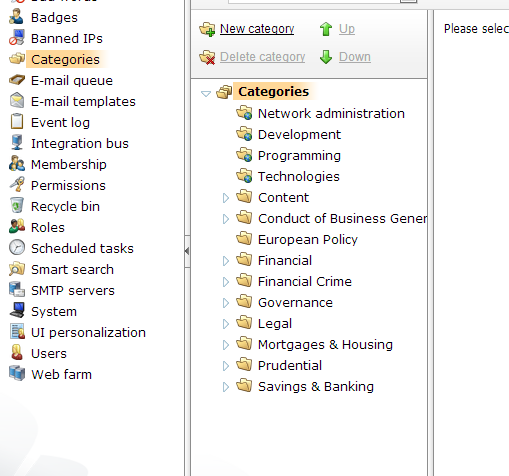 我们在CMSSiteManager -> Administrator -> 管理部分添加了一些类别。