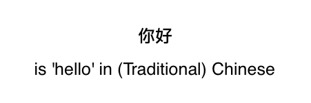 grid.text("is 'hello' in (Traditional) Chinese", y=1/3)