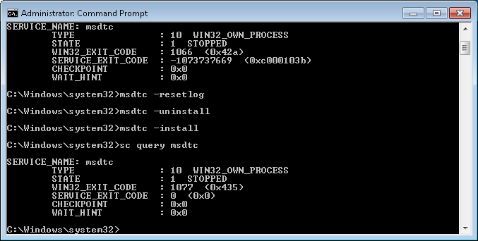 Failed to initialize the MS DTC Communication Manager. Error Specifics: hr = 0x80070057, d:\w7rtm\com\complus\dtc\dtc\cm\src\ccm.cpp:2117, CmdLine: C:\Windows\System32\msdtc.exe, Pid: 5332