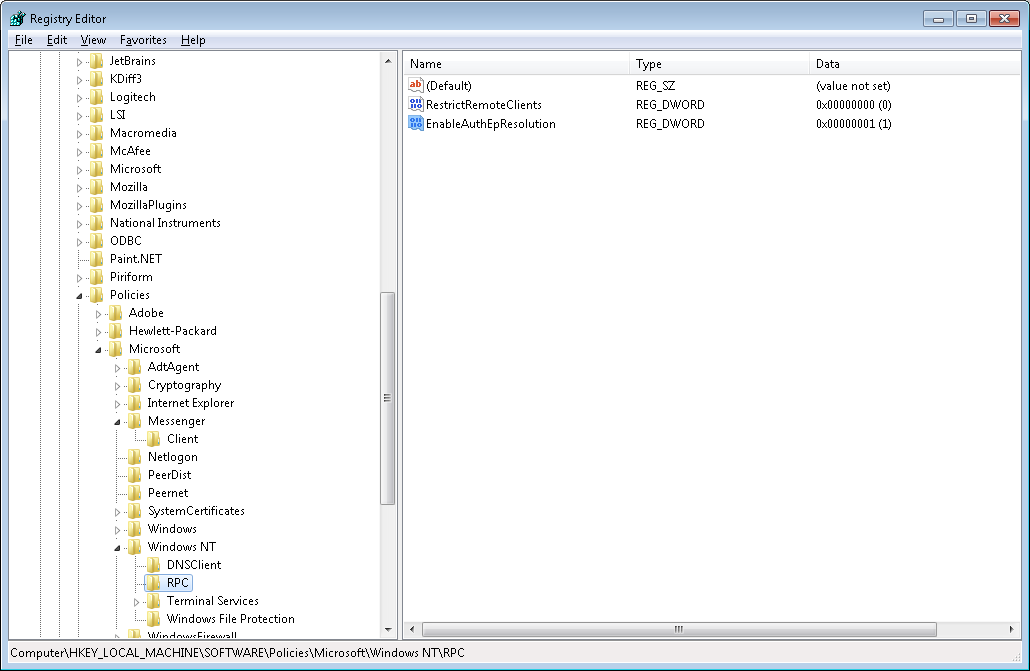 尝试从注册表中删除HKLM\Software\Microsoft\Rpc\Internet键。