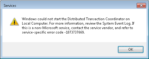 A MS DTC component has encountered an internal error. The process is being terminated. Error Specifics: DtcSystemShutdown (d:\w7rtm\com\complus\dtc\dtc\msdtc\src\msdtc.cpp@2539): Shutting down with an error