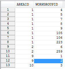 cmd.CommandText = "SELECT AreaId, WorkgroupId FROM TPM_AREAWORKGROUPS";