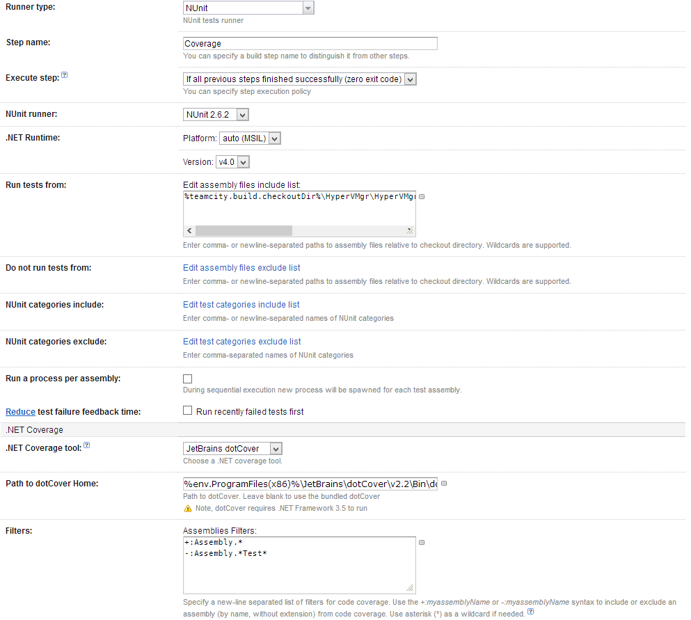 其次,在dotCover 8中有另一个TeamCity错误,您需要使用试用dotCover安装,直到他们修复它(并将安装的dotCover路径放入构建步骤配置中)。
