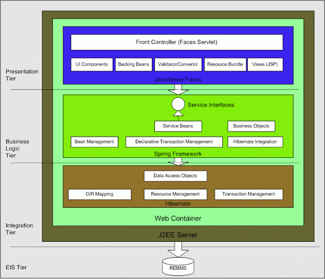 在我看来,Java项目应该以以下架构的形式出现。不管所使用的技术是什么,它都可以算作Java项目。如果MVC框架(Struts、JSF或Spring )、持久性(JPA、Hibernate)和上下文,则项目中存在依赖注入。