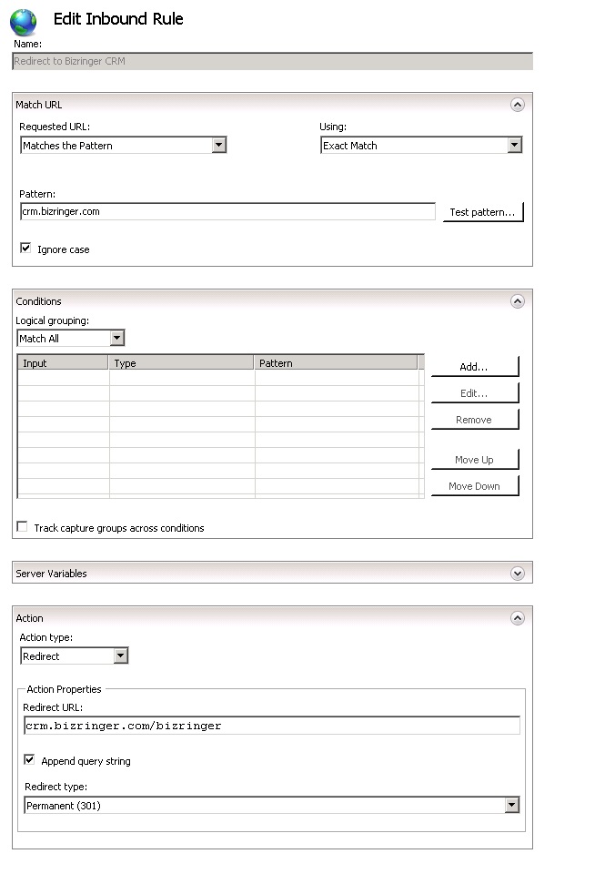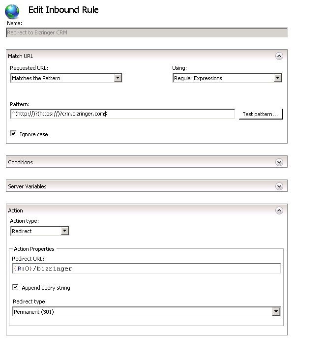 我的默认网站是crm.domainname.com.如果有人尝试使用此请求,则应该重定向到crm.domainname.com/subfolder.