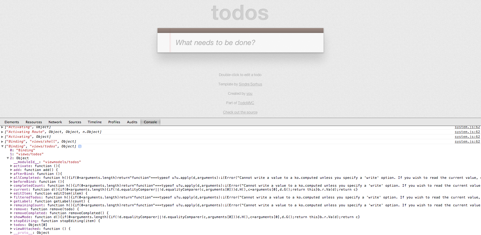 我正在尝试使用杜兰达尔 (包括淘汰赛 + RequireJS)从TodoMVC模板构建todo应用程序的一个版本。我意识到todo应用并不真正展示Durandal的功能,但我正在学习,并认为这将是一个很好的第一个项目。