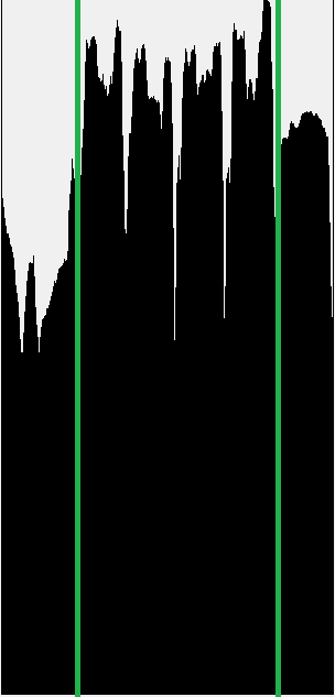您可以应用一个简单的脉冲响应过滤器,如Boxcar或任何其他方法平滑到您的直方图,以减少高频成分。在此之后,您可以计算局部最小值和最大值,并在带宽内计算单个峰值(最大-最小-最大-最小-每峰值),这将有助于缩小ROI。