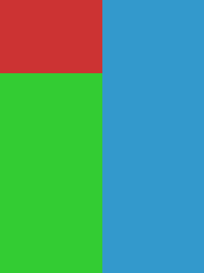 每个矩形都是一个<div>。在红色矩形中,我有三个按钮来选择蓝色和绿色矩形的内容。