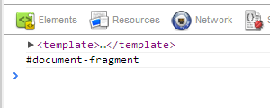 然而,正如Andbdrew所指出的,模板标记仍然是一个草案元素,我们还远未决定如何正确地使用它或如何访问它们,因此,考虑到示例代码如何使用它,我建议只使用<script type="text/template">...</script>元素,并使用document.querySelector("script[type='text/template']");来选择它,而不是使用实验性的元素=)