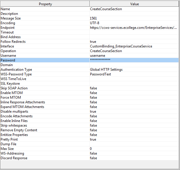 下面是SOAPUI端点https://ccws-services.ecollege.com/EnterpriseServices/v2.1/EnterpriseCourse.svc的属性: