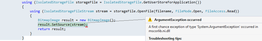 我使用以下代码从IsolatedStorageFile读取一些缓存的图像: