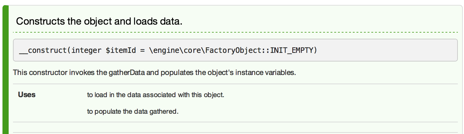 @uses SomeClass::gatherData() to load in the data associated with this object.原始phpdocumentor不支持名称空间,您可能需要切换到phpdocumentor2版本。