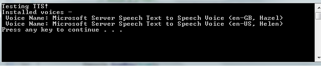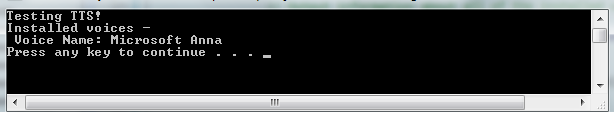 Console.WriteLine("Testing TTS!");
