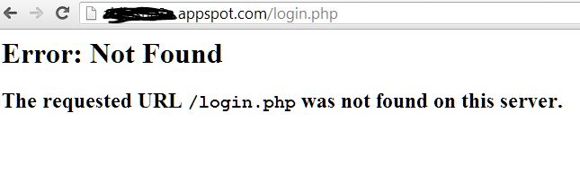 但是当用户的浏览器请求/login.php时,App在app.yaml中查找并没有找到任何匹配的路由,因此您将得到这个404错误。