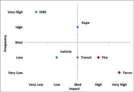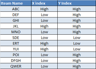 我想要创建一个分散图(四个象限)使用Excel 2010。