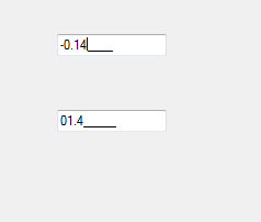 直接设置Text不起作用,因为Mask将决定文本的显示方式。0.14将首先成为014 (因为点将被忽略),然后014将在从Mask应用格式后成为01.4_。如果您想直接设置Text,您可能必须创建您自己的MaskedTextBox,尽管这很容易,但我想给出我们使用extension method的解决方案。