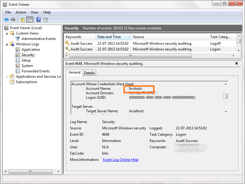 我可以复制你的问题,它似乎与客人帐户和安全政策有关。首先,当您使用LogonUser函数时,将生成一个新事件安全性。您可以检查登录到该窗口的用户帐户。