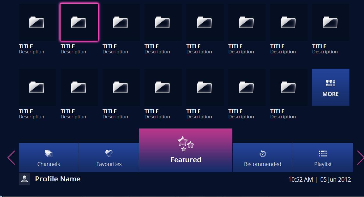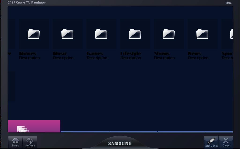 我正在为1280x720创建三星智能电视应用程序。我正在使用4.1SDK。我也用同样的分辨率设计了我的html。但问题是,当我在模拟器中检出它时,它并没有显示全部内容。我的Html视图: