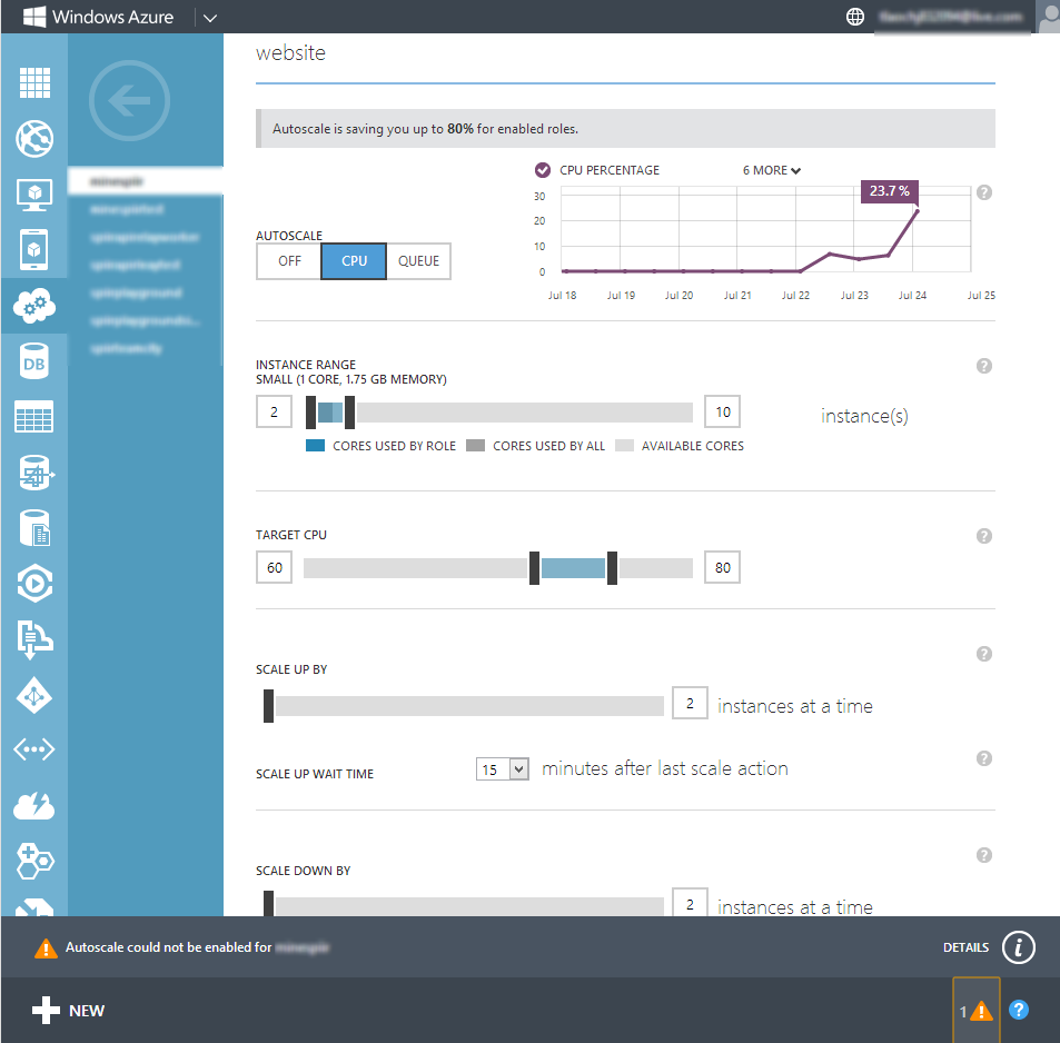 当我单击时,我被重定向到指定云服务的Scale选项卡,没有更多的信息。