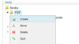 1.右键单击“媒体根目录”并选择“创建”--“创建”媒体项目(“媒体类型”文件、文件夹、当前图像)--单击“浏览-操作永不完成”。