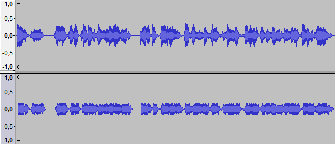 另外,在你发布的波形图中,我可以看到后一个信号是更压缩的,这可能指向某种自动调平在音频链的某个地方。