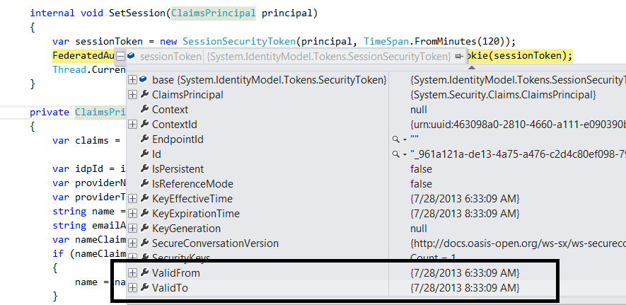 var sessionToken = new SessionSecurityToken(principal, TimeSpan.FromMinutes(120));