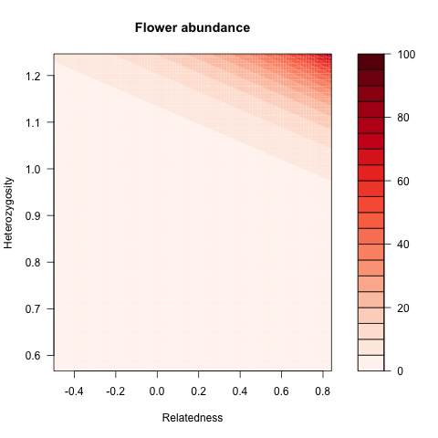 xlab = "Relatedness", ylab = "Heterozygosity", main = "Flower abundance",