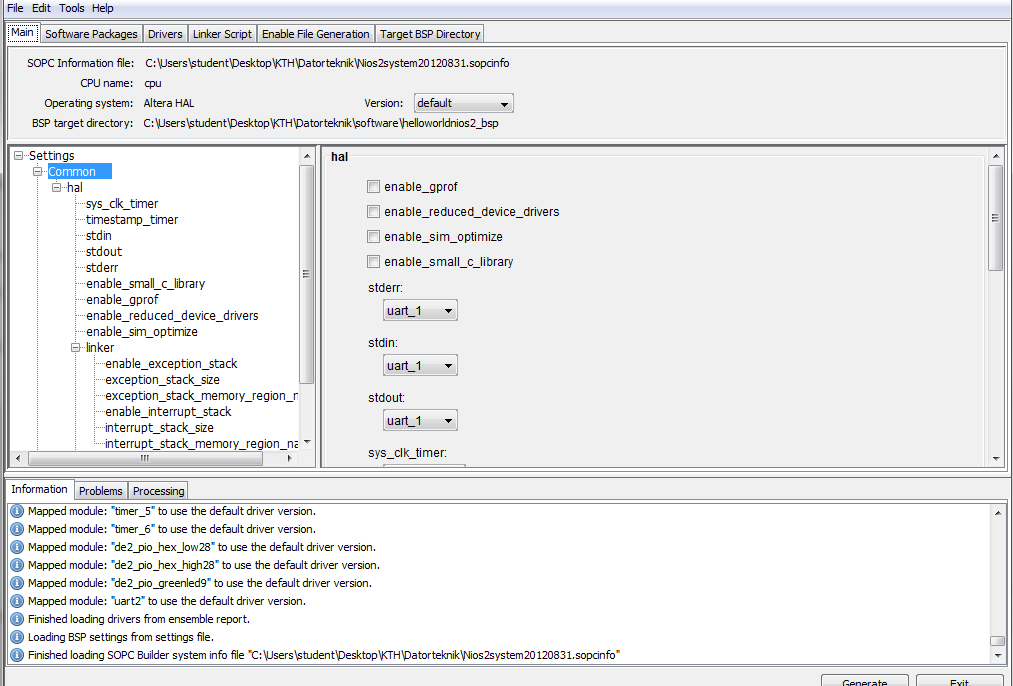 nios2-bsp hal my_bsp --default_stdio uart1https://stackoverflow.com/questions/17966235