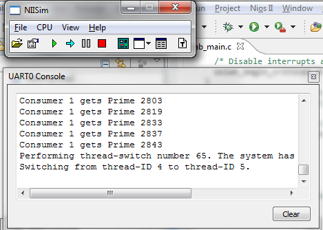 可以在DE2板上运行操作系统,但是程序会执行得很快。>输出来自串行端口uart0,即9极D-子接触器.由于程序运行得如此之快,所以在使用2333数字时,从DE2 (但不是从PC)断开USB到串行>适配器是明智的。>否则putty中的缓冲区将满,这样运行开始时的输出就会丢失。