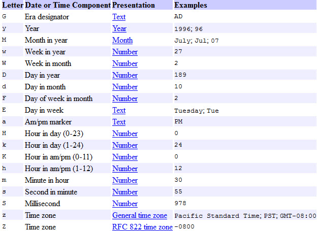 引用这些格式Java日期格式文档