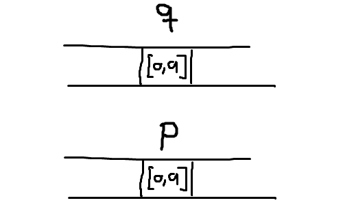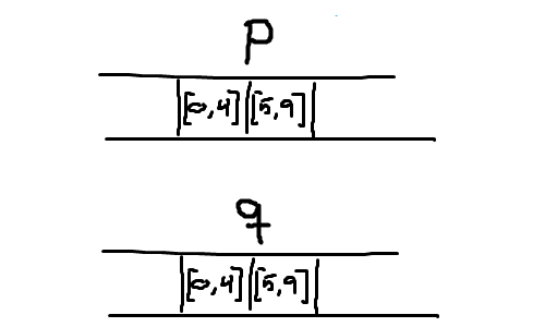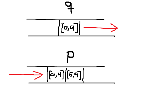 1)创建两个队列,q和p,包含初始范围[a, b]。