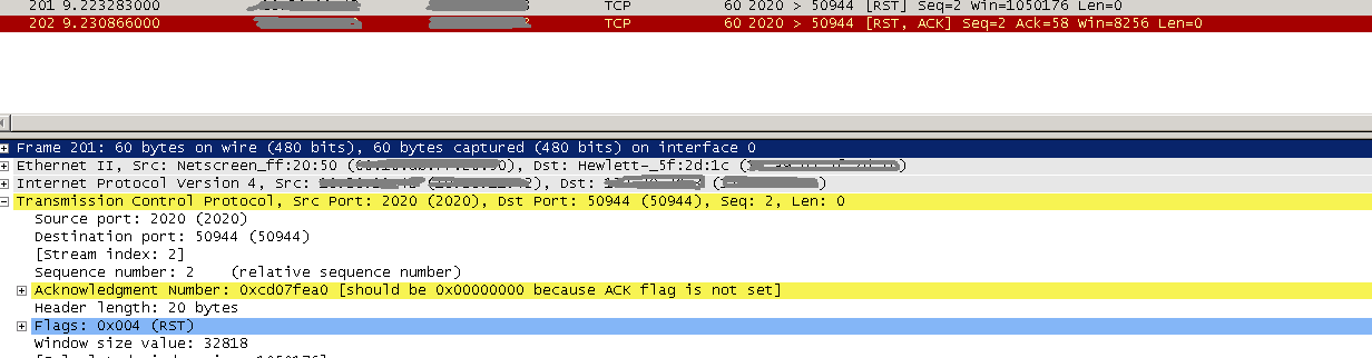 TCP重置数据包不是应用程序级协议的一部分,应用程序不应该看到它们。